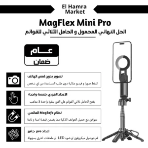 منتج MagFlex Mini Pro هو حامل ثلاثي القوائم مدمج وقوي مصمم خصيصًا للمبدعين والمصورين الذين يستخدمون هواتفهم الذكية. يجمع بين التصميم المحمول والأداء الاحترافي، مما يجعله خيارًا مثاليًا للتصوير أثناء التنقل.